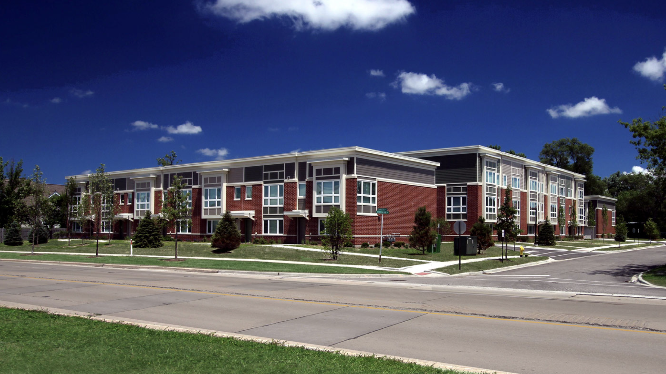 On a site which had been vacant since a 2008 planned development was forced to stall amidst the national foreclosure crisis, Daveri Development Group- owners of several affordable housing developments- acquired the property and submitted its proposal for Greenleaf Manor in October 2012. Daveri partnered with non-profit affordable housing developer New Directions Housing Corporation, along with contractors McShane Construction Company and Cordogan Clark & Associates, to bring the development to fruition.