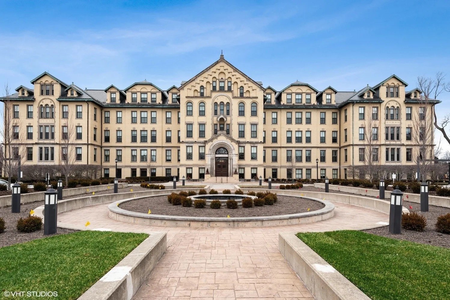 Mallinckrodt’s five-story, 180,000 square foot Italian Renaissance structure has been a celebrated fixture of the Wilmette landscape since 1918. Originally a convent, Mallinckrodt College was later part of Loyola University. In 2001, after Loyola University’s Board of Trustees decided to relocate its operations, residents presented a petition with nearly 5,400 signatures—representing nearly one-third of the community’s 18,000 registered voters—to the Board of Park Commissioners requesting that the community be given the right to vote on whether the Park District should purchase the historic building and its land. In spring 2002, residents approved a referendum authorizing the Park District to acquire the land at a cost of $1 million per acre. The Park District was initially focused on the property’s green space and did not have a plan for the building itself. Residents campaigned for senior housing and initially opposed the developers’ plans to clear the front of the property for an underground parking garage, but once the public understood the developers’ intentions to replant the area once the garage was in place, they dropped their opposition. The developers purchased the building and a total of 3.5 acres from the Park District for $3.5 million.